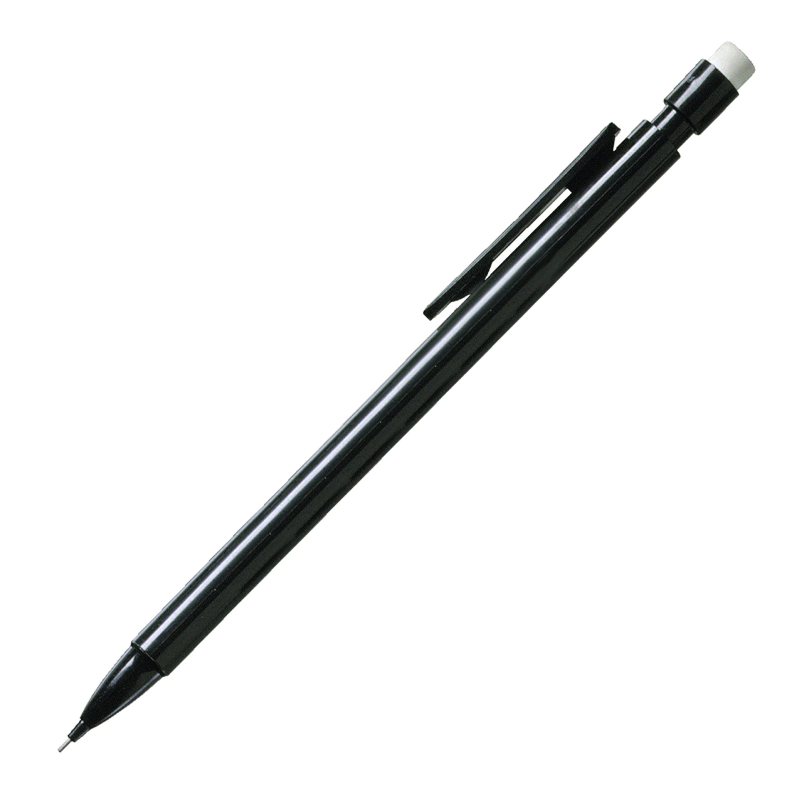 Promotional mechanical pencil with plastic barrel and white eraser. HB retractable 0.7mm lead.